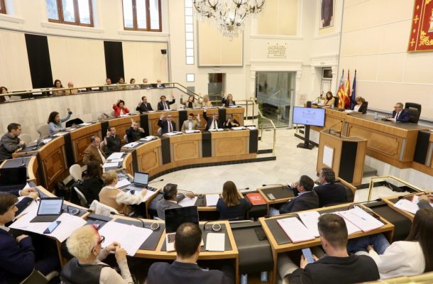 04-12-24.- El pleno de la Diputación de Alicante ha aprobado hoy una moción conjunta firmada por PP, PSPV-PSOE y Compromís para impulsar distintas acciones que contribuyan a mejorar la respuesta a las emergencias en municipios de menor población. El refuerzo del papel de apoyo y asesoramiento del Consorcio de Bomberos, la colaboración activa con las estaciones meteorológicas del territorio y las confederaciones hidrográficas o la fijación de protocolos de respuesta son algunas de las propuestas planteadas en este acuerdo que no ha contado con el apoyo de Vox, que se ha abstenido.