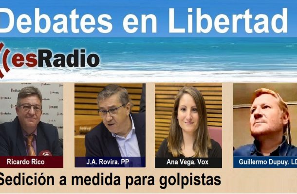 «Los delincuentes están modificando el código penal» asegura Jose Antonio Rovira. «De no ser por la iniciativa de Vox al denunciar a los golpistas, estos nunca hubieran tenido ni juicio, ni cárcel» afirma Ana Vega, portavoz del partido VOX en la Comunidad Valenciana. Guillermo Dupuy, editorialista de Libertad Digital, partidario de una moción de censura cada vez que el Gobierno de una Comunidad Autónoma incumpla la Constitución.