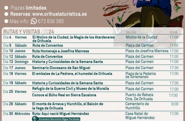 Las rutas se irán abriendo semanalmente. Todas las rutas del mes de octubre en la web www.orihuelaturistica.es.