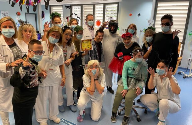 Sant Joan d’Alacant (31.10.23). En este Halloween 2023 se ha vivido un ambiente “monstruoso” en el Hospital de Día de Oncología del Hospital Universitario Sant Joan d’Alacant. Un total de 56 personas -más que la media habitual de 40 diarias al ser el 1 de noviembre festivo- han recibido sus tratamientos de quimioterapia e inmunoterapia en un ambiente distendido que humaniza su atención sanitaria.
