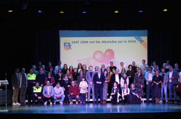 El Ayuntamiento de Sant Joan d’Alacant organizó ayer domingo, 9 de marzo, un acto de agradecimiento a todas las entidades, asociaciones, colectivos y empresas que participaron en la campaña que se desarrolló a favor de las personas damnificadas por la devastadora Dana que afectó a más de 70 municipios de la provincia de Valencia.