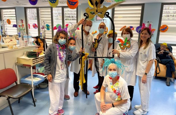 De este modo, los profesionales de enfermería se han ataviado con complementos temáticos para celebrar el carnaval, y muchos de los pacientes han acudido con complementos compatibles con sus tratamientos de quimioterapia o inmuntoterapia tales como gorros, diademas o máscaras para participar en este evento.
