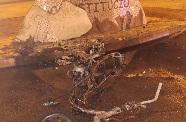 La avería y el posterior incendio de un ciclomotor, ocurrido esta pasada medianoche, ha provocado daños en la Plaza de la Constitución de Sant Joan d’Alacant. El incidente se produjo en la esquina de este enclave con la calle Cronista Sánchez Buades, donde el conductor del vehículo, que entraba a Sant Joan procedente de la playa, tuvo que dejarlo abandonado al comprobar que se estaba calentando el motor. Minutos después se provocó el incendio, que calcinó completamente el ciclomotor, así como afectó de forma directa al mosaico decorativo que identifica este espacio público de Sant Joan.